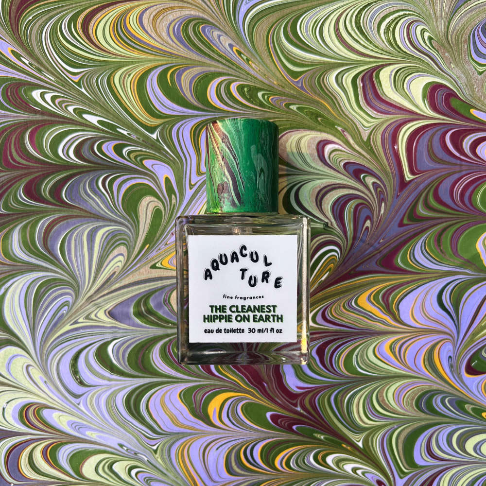 The Cleanest Hippie on Earth opens with a fresh, clean, soapy, citrusy palo santo and a touch of reefer. The heart of this fragrance is transparent patchouli and robust nag champa incense -- a blend of flowers, woods, and resins, notably here red champaca, sandalwood, and labdanum. In the drydown, it wraps you in warm, sun-dried laundry.
